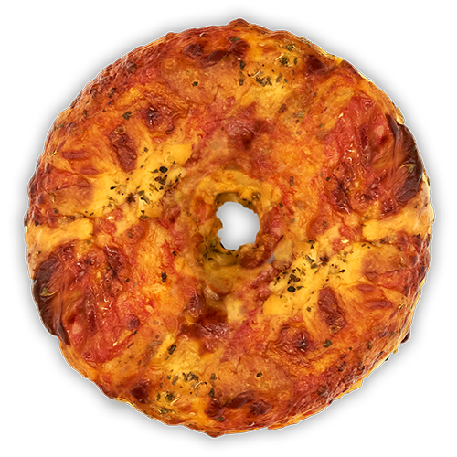 The delicious flavor of baked ziti in a bagel. Sun-dried tomato dough, topped with oregano, ricotta and mozzarella cheese!